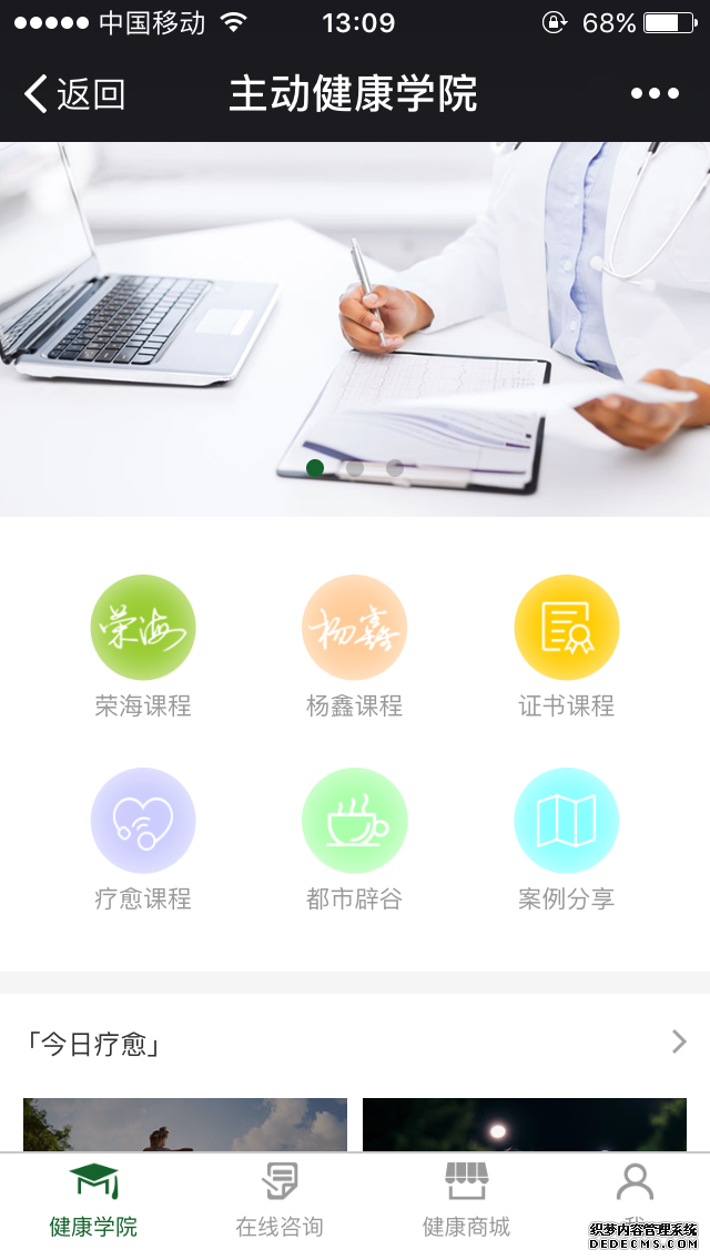 课程类别:按课程类别展示课程,课程类别可设置视频课程、音频课程、图文课程、付费课程等多种属性。